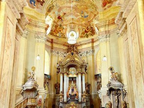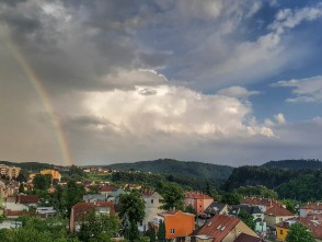 Průhled židovskou čtvrtí na kostel sv. Jakuba